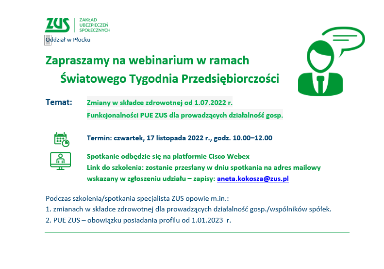 Bezpłatne webinaria ZUS - Światowy Tydzień Przedsiębiorczości
