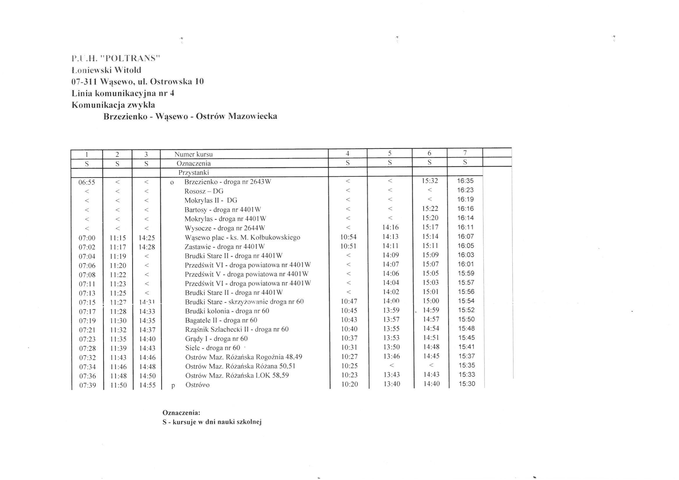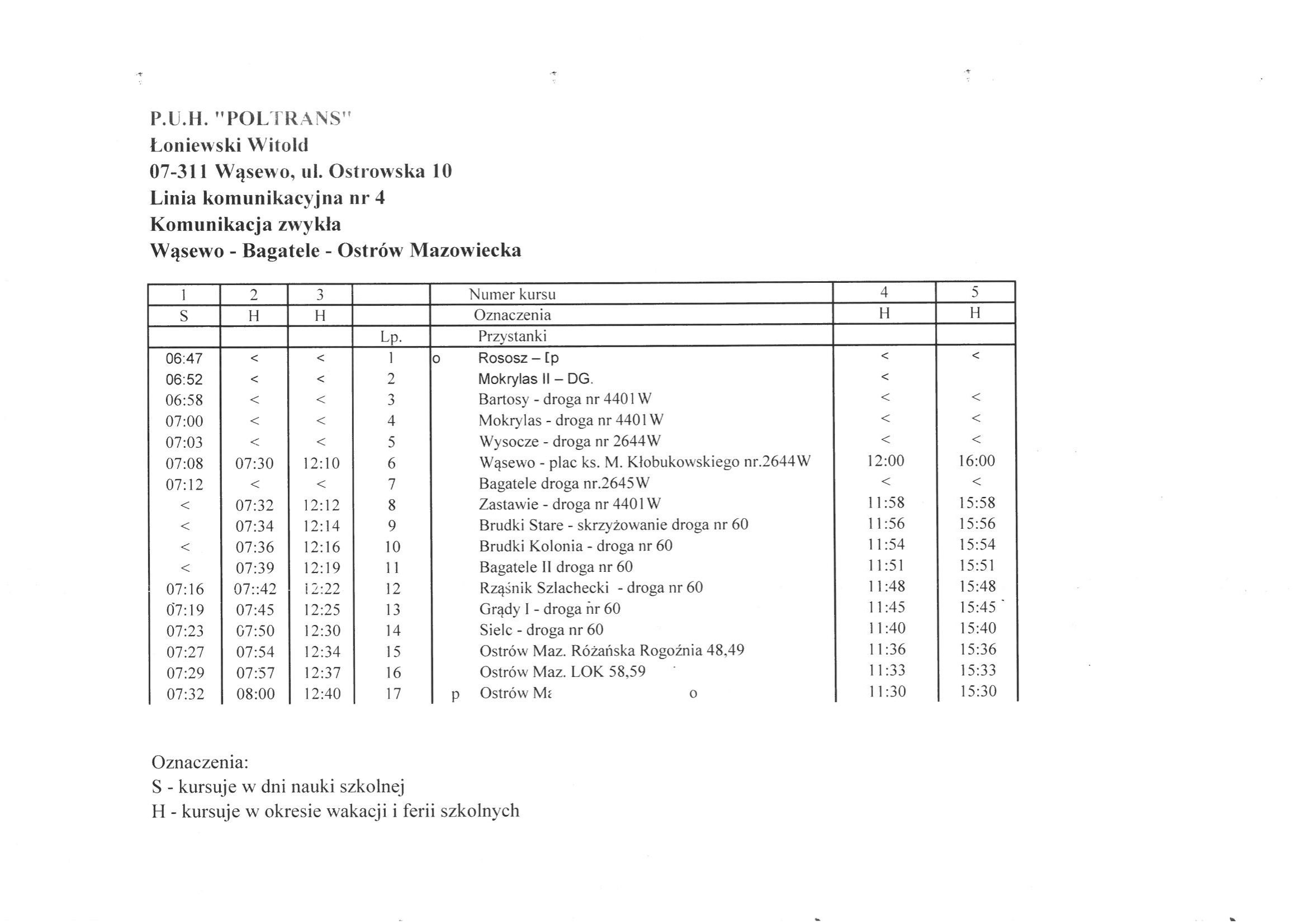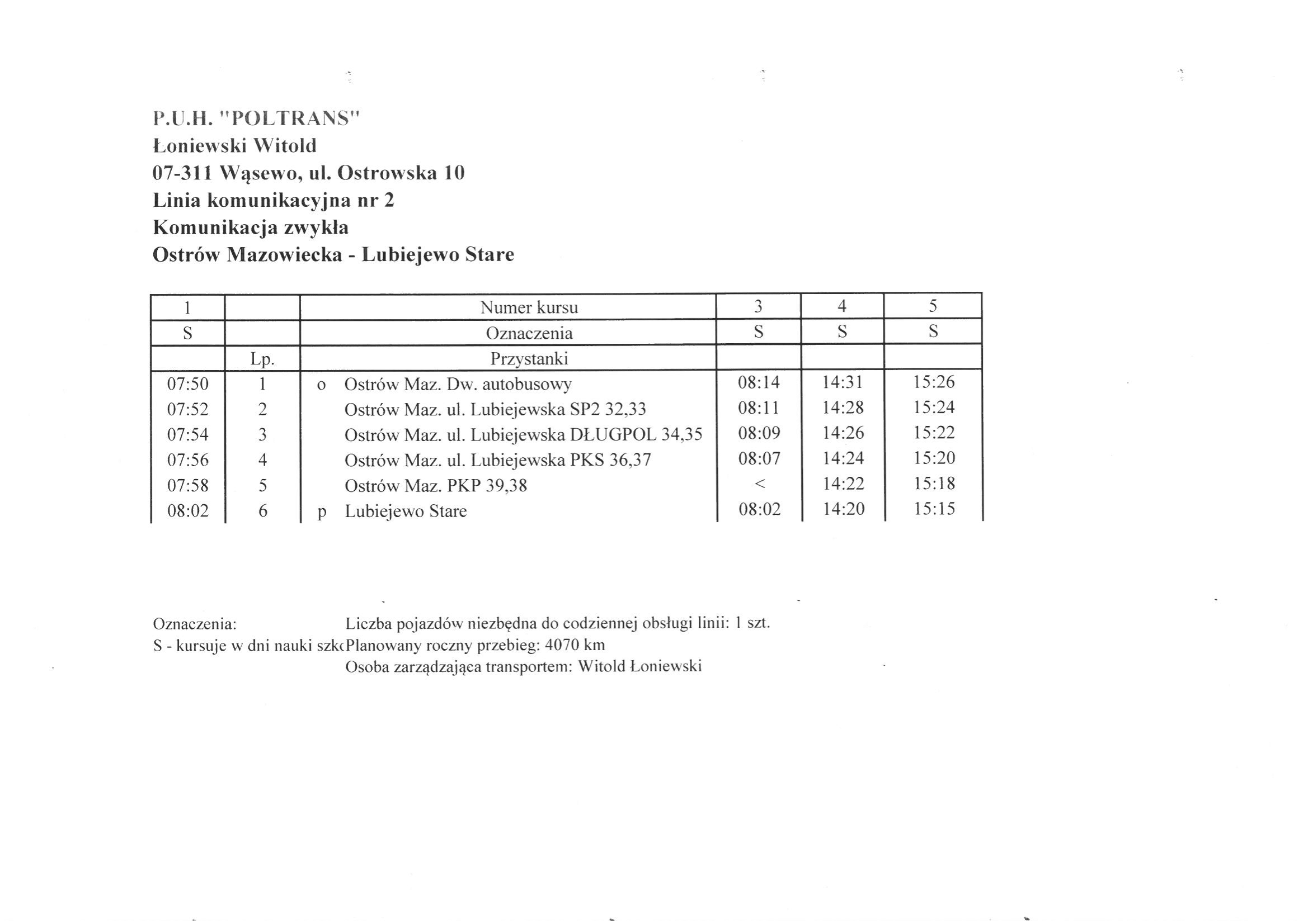 Ruszyła sprzedaż biletów miesięcznych dla młodzieży dojeżdżającej do szkół w Ostrowi Mazowieckiej i Lubiejewie więcej informacji na temat biletów miesięcznych dostępne w siedzibie firmy P.U.H "POLTRANS" pod adresem : Wąsewo ul. Ostrowska 10 oraz pod nr tel.: 502 228 766